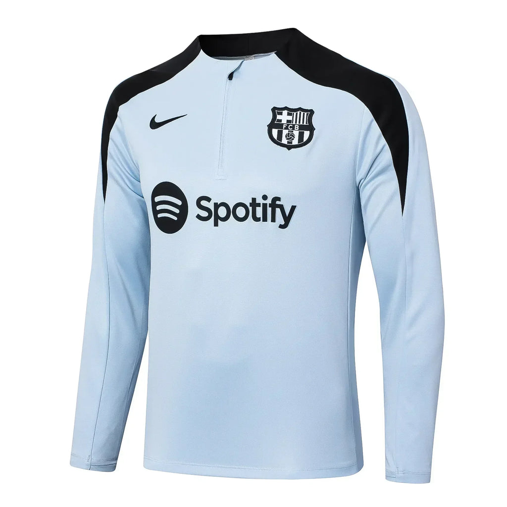 Conjunto Agasalho Treino Barcelona 24/25 - Branco e Preto